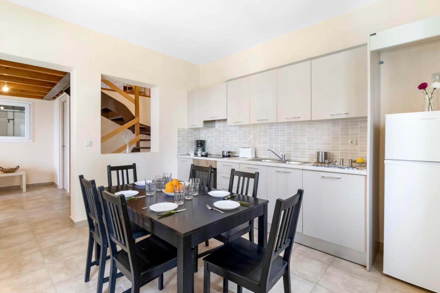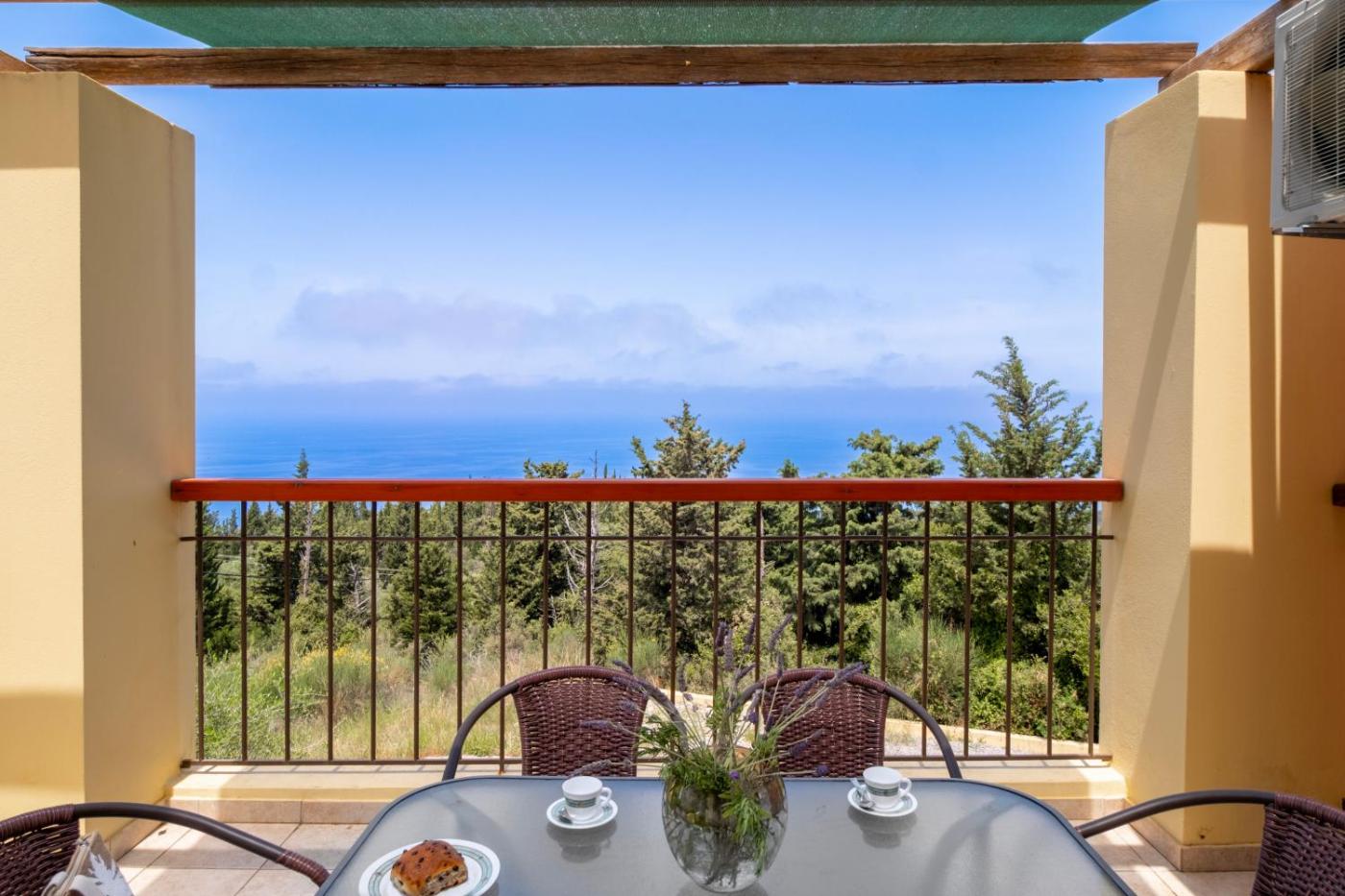 Three-Bedroom Villa. Following the Ionian design, this villa features spacious rooms, a veranda with Ionian Sea and the surrounding forest area views, private entrance and parking. Kitchen facilities and accessories are provided. Two full bathrooms and towels and bed linen are provided.One of the bedrooms is the area of the internal attic.