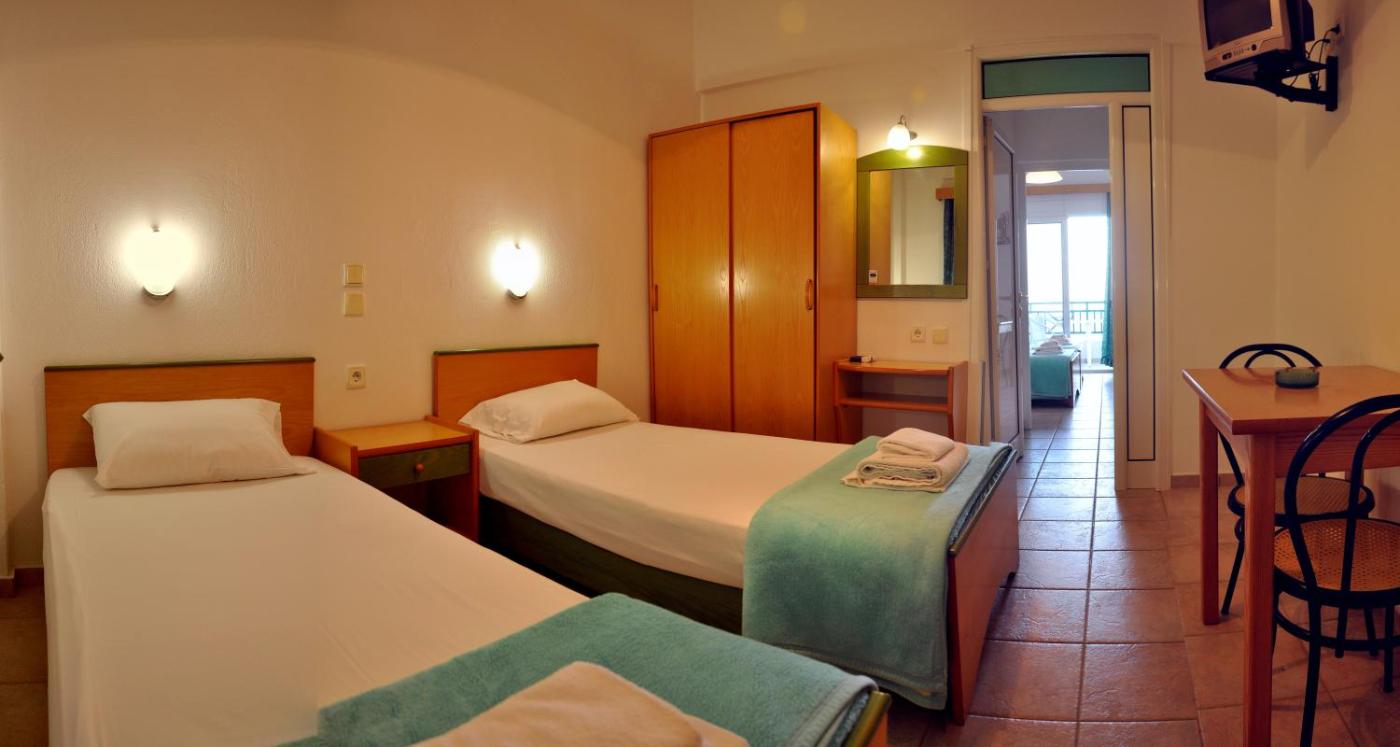 Studio (3 Adults). The studio comes with a balcony overlooking the sea. It includes a TV with satellite channels and a bathroom with shower and hairdryer. The kitchenette features a fridge. Free Wi-Fi is offered throughout. ;