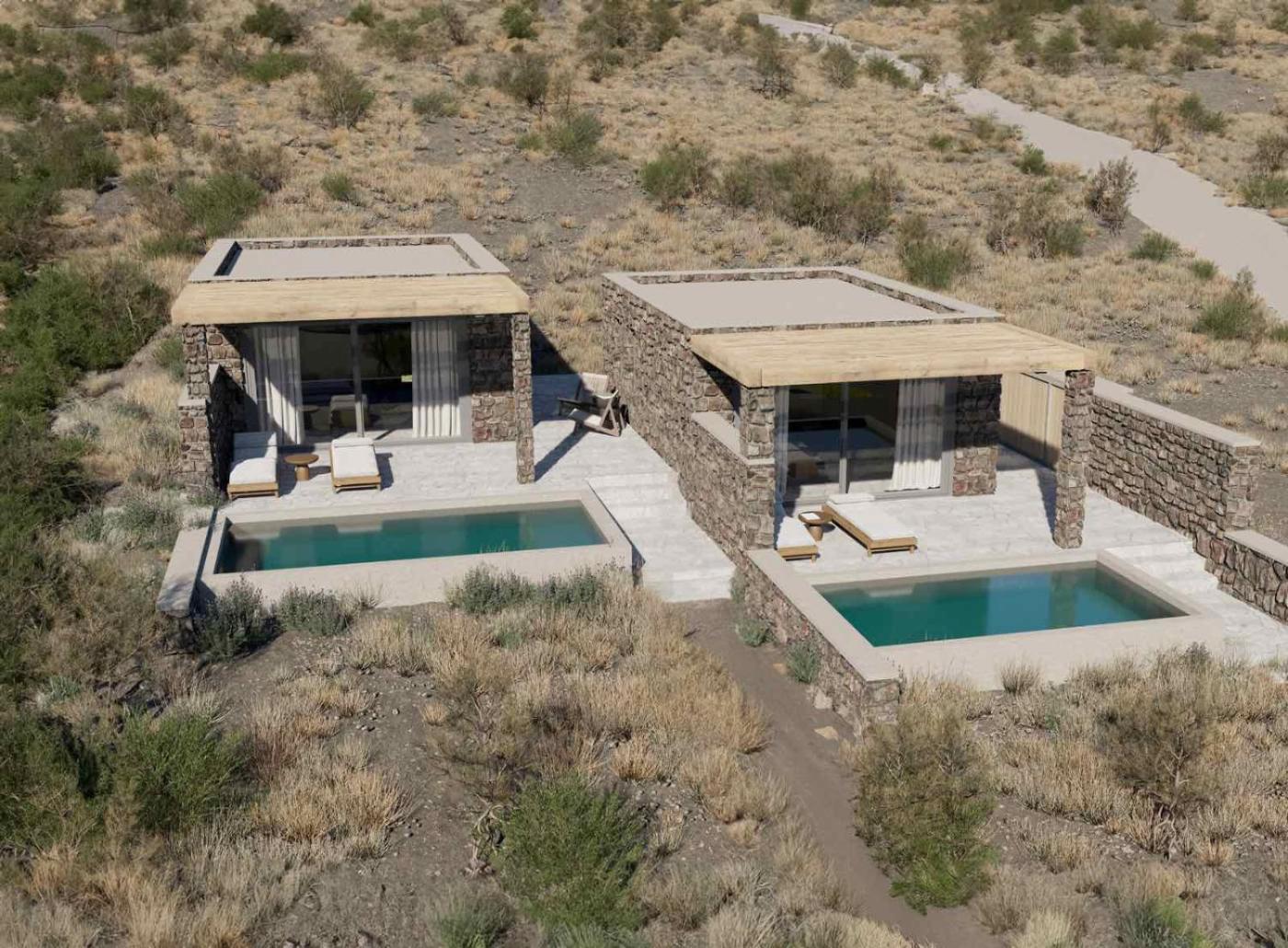 Suite with Private Pool. This suite offers a pool with a view. Featuring a private entrance, this air-conditioned suite comprises 1 bedroom and 1 bathroom with a walk-in shower and a bath. The suite provides soundproof walls, a tea and coffee maker, a dining area as well as a terrace with sea views. The unit offers 2 beds. ;