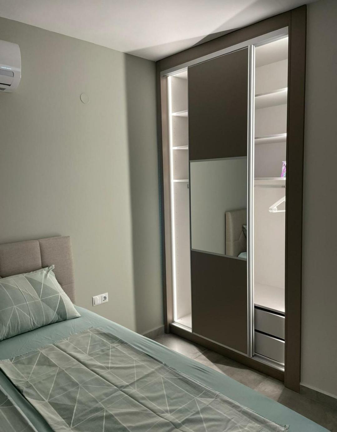 Two-Bedroom Apartment. Featuring a private entrance, this air-conditioned apartment consists of 1 living room, 2 separate bedrooms and 1 bathroom with a walk-in shower and a hairdryer. Guests can make meals in the kitchen that is equipped with a stovetop, a refrigerator, kitchenware and an oven. Boasting a terrace with garden views, this apartment also provides a washing machine and a flat-screen TV with satellite channels. The unit offers 2 beds.