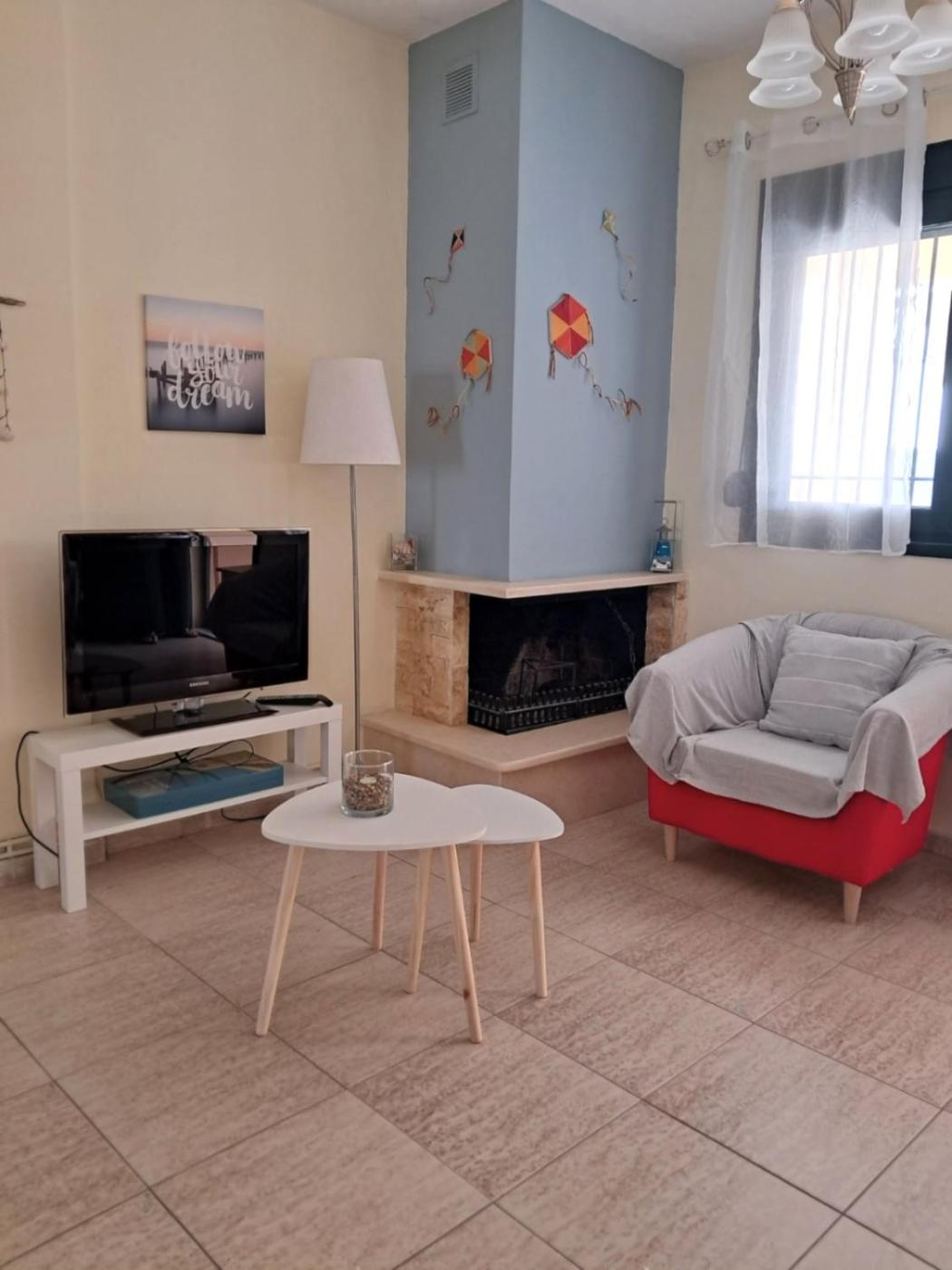 Two-Bedroom House. Guests will have a special experience as the holiday home features a fireplace. Featuring a private entrance, this air-conditioned holiday home consists of 1 living room, 2 separate bedrooms and 2 bathrooms with a bath and a shower. In the fully equipped kitchen, guests will find a stovetop, a refrigerator, a dishwasher and kitchenware. Boasting a terrace with sea views, this holiday home also provides a washing machine and a flat-screen TV with cable channels. The unit offers 2 beds.