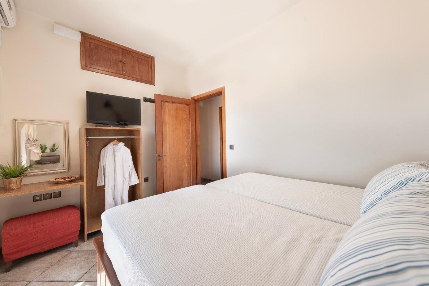 Two-Bedroom House. Boasting a private entrance, this air-conditioned holiday home comes with 1 living room, 2 separate bedrooms and 1 bathroom with a bath and a hairdryer. The well-fitted kitchen has a stovetop, a refrigerator, a dishwasher and kitchenware. Featuring a terrace with sea views, this holiday home also features a washing machine and a flat-screen TV with satellite channels. The unit has 3 beds.