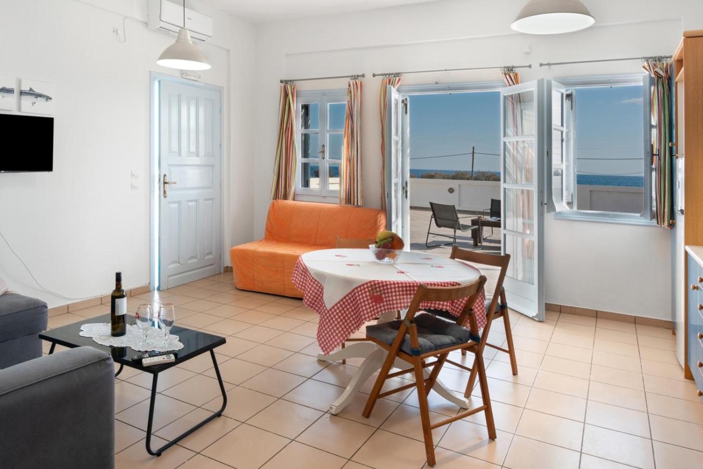Superior One-Bedroom Apartment with Balcony. Boasting a private entrance, this air-conditioned apartment comes with 1 living room, 1 separate bedroom and 1 bathroom with a hairdryer. The apartments kitchen, which has kitchenware and an oven, is available for cooking and storing food. Featuring a balcony with sea views, this apartment also features a coffee machine and a TV. The unit has 2 beds.