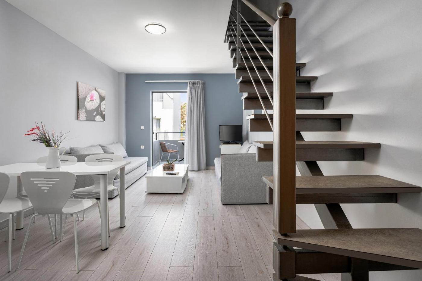 Junior Suite - Split Level -Inclusive. Opening to a balcony with pool and Cretan Sea views, this air-conditioned suite comes with 2 bathrooms and free Wi-Fi. A staircase leads to the upper floor with the bedroom. Please note that extra beds are not available for this room type. ;