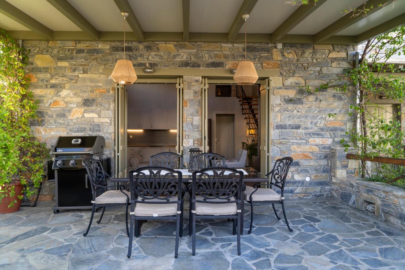 Two-Bedroom Villa. This villa features a fireplace. Featuring a private entrance, this air-conditioned villa comprises 1 living room, 2 separate bedrooms and 2 bathrooms with a bath and a shower. Guests will find a stovetop, a refrigerator, a dishwasher and kitchenware in the fully equipped kitchen. The villa also provides guests with a barbecue. Boasting a terrace with sea views, this villa also provides a washing machine and a flat-screen TV with satellite channels. The unit offers 4 beds.