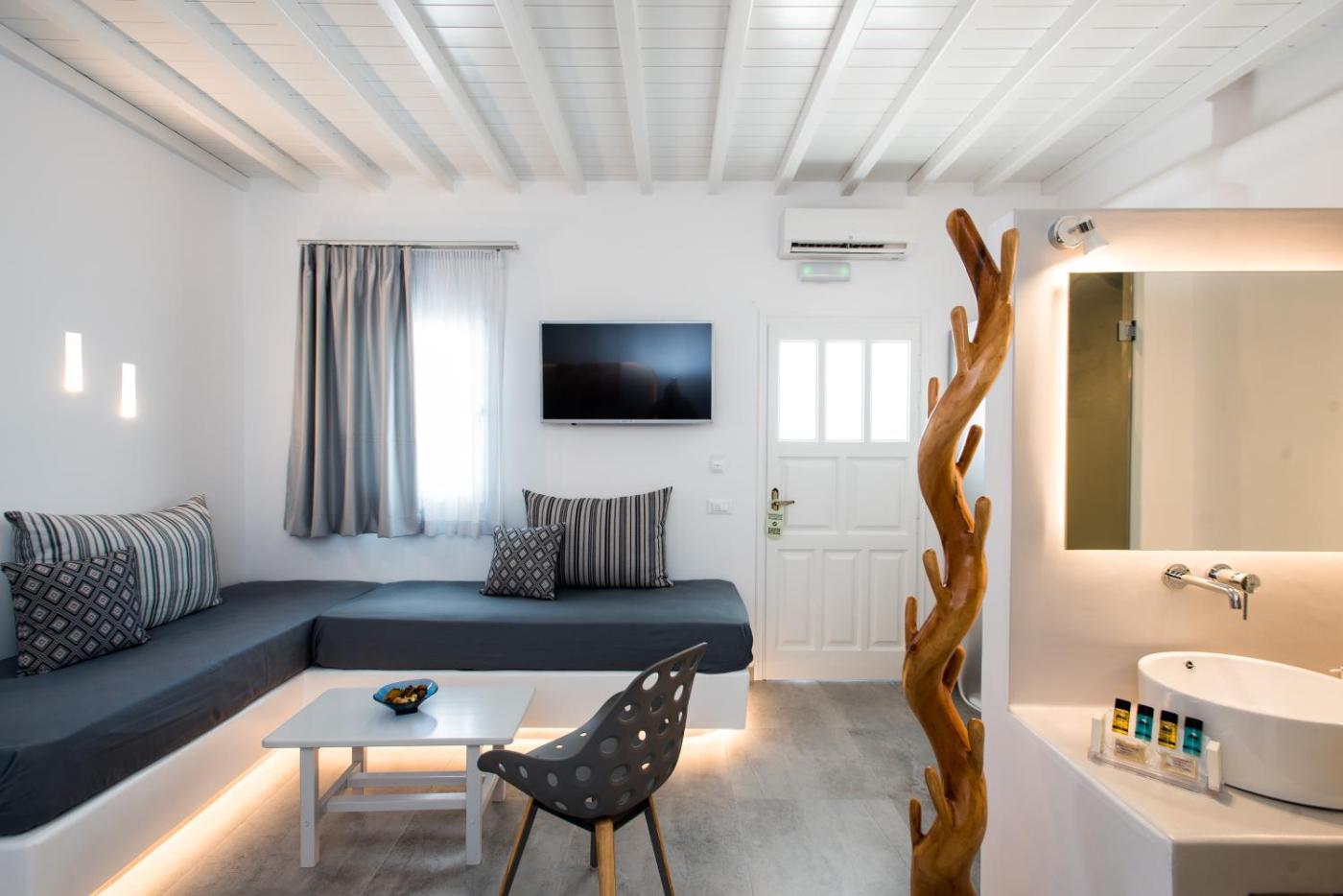 The family owners offer a personalised service combined with a relaxed atmosphere. A bus connecting to Mykonos Town, which is just 3.5 km away, stops 50 metres from the property. Frequent boat trips connect to the southern beaches of the island. The nearest airport is Mykonos, 3 km from the accommodation, and the property features airport or port shuttle service.