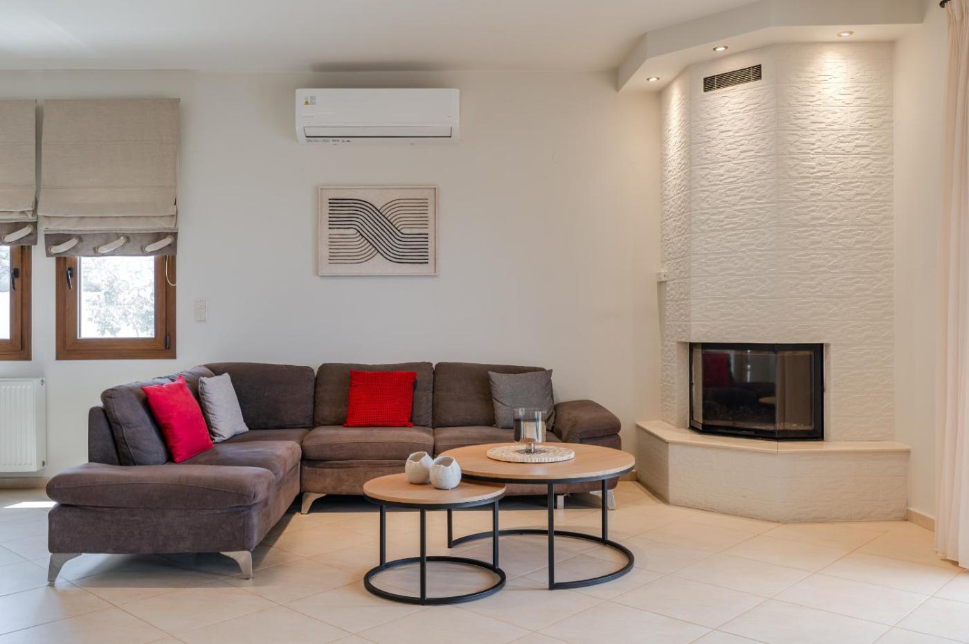 Villa with Private Pool. The pool with a view and fireplace are the standout features of this villa. Featuring a private entrance, this spacious villa also comprises 3 bedrooms, a seating area and 2 bathrooms with a bath and a shower. Guests will find a stovetop, a refrigerator, a dishwasher and kitchenware in the fully equipped kitchen. The villa also provides guests with a barbecue. The air-conditioned villa provides a flat-screen TV with streaming services, a washing machine, soundproof walls, a minibar as well as sea views. The unit offers 4 beds.