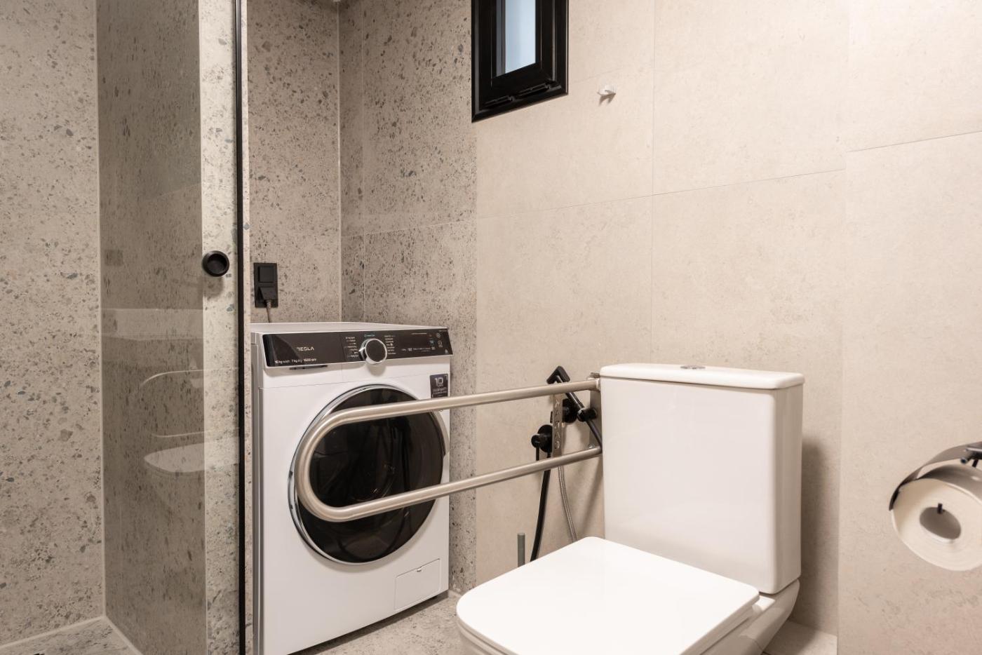 Two-Bedroom Apartment. The well-equipped kitchen has a stovetop, a refrigerator, kitchenware and an oven. The spacious apartment features air conditioning, a washing machine, a tea and coffee maker, a seating area, as well as a flat-screen TV. The unit has 2 beds.