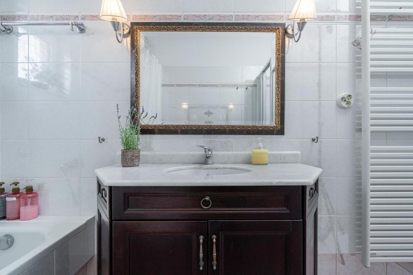 Classic Apartment. Guests will have a special experience as this apartment offers a fireplace. Featuring a private entrance, this air-conditioned apartment is comprised of 2 living rooms, 3 separate bedrooms and 2 bathrooms with a bath and a shower. In the kitchen, guests will find a stovetop, a refrigerator, a dishwasher and kitchenware. A seating area with a flat-screen TV, a washing machine and a terrace are featured in this spacious apartment. The unit offers 6 beds.